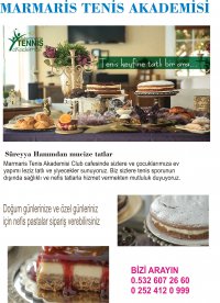 Marmaris Tenis Akademisi kortları içinde yer alan club cafemizde birbirinden lezzetli ev yapımı tatları burada bulabilirsiniz. İster sevdiklerinizle kahvaltı keyfi, ister öğlenleri günlük menü veya tatlılarımızın lezzetine bakabilirsiniz. Çocuklarımız spor yaparken sizde ...